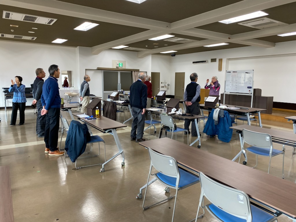 11月発声訓練おつかれさまです。今回食道発声初級と中級の8人での発声訓練です。最初に全員でバ、バ、バ、を三分、一分、休み・・・連続発声訓練で肩の力が抜け自然に空気の吸い込みが自覚できるようになりました。鼻の付け根付近が冷たく感じる事で自然に空気を取り入れて発声している事を自覚してください。三文字、四文字まで会話が出来るようにがんばりましょう